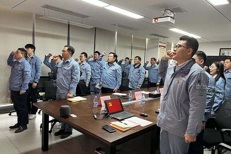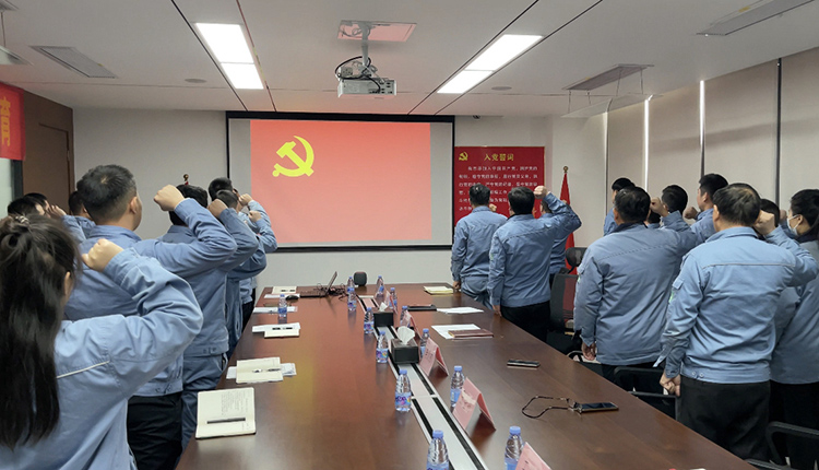 宣誓儀式在莊嚴(yán)的《國際歌》中拉開序幕。隨后,在公司黨委書記何文忠的帶領(lǐng)下,預(yù)備黨員高舉右拳面向黨旗莊嚴(yán)宣誓,其他黨員也一同重溫了入黨誓詞。