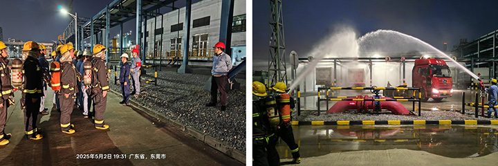 東莞巨正源科技公司于5月2日19時10分,在一期PDH110單元23米層模擬物料泄漏,針對復雜高空作業環境,演練引入智能監測設備實時傳輸數據,實現應急處置的智能化升級。5月4日開展PP裝置和PDH裝置物料泄漏應急處置演練,檢驗多部門協同作戰能力,并針對高溫高壓設備泄漏風險開展專項處置。通過演練復盤總結,不斷優化應急預案,完善風險防控機制,以“演練常態化”推動“安全意識扎根化”。