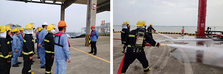 盛源石化、鴻源碼頭公司于5月2日17時30分開展管線泄漏火災事故應急盲演,模擬碼頭管線法蘭連接部位松動引發泄漏并起火,火勢迅速蔓延。中控室接警后,第一時間上報并調整視頻監控,啟動應急預案。搶險救援組、專職消防隊等迅速集結,穿戴防護裝備抵達現場,切斷電源,啟動噴淋系統,架設消防水槍壓制火勢。演練全程歷時20分鐘,各環節銜接緊密,未出現指令延誤或行動混亂,充分展現了企業日常嚴格訓練的成效和救援隊伍快速響應的能力。