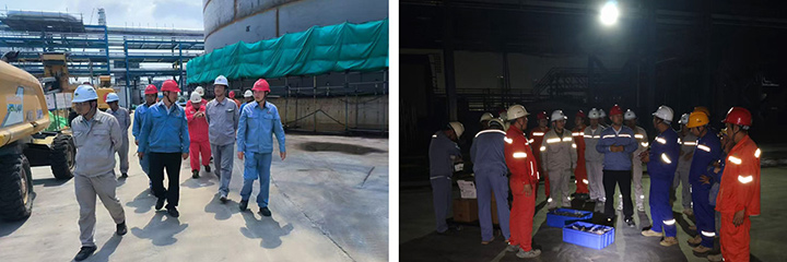 五一假期期間,揭陽巨正源科技公司領導帶領值班團隊深入一線,慰問節日期間加班奮戰的員工,走訪了門衛崗亭值守人員、110kV變電站值班人員、醋酸及原料罐區施工團隊及監理人員,為他們送去牛奶、面包等慰問品,并致以節日的問候與誠摯的感謝。公司領導鼓勵員工們繼續發揚拼搏精神,堅持安全第一、質量至上、高效收尾,為項目高標準投產保駕護航。領導的關懷和鼓勵,讓一線員工倍感溫暖和振奮,大家紛紛表示將站好每一班崗,全力以赴完成項目建設任務。